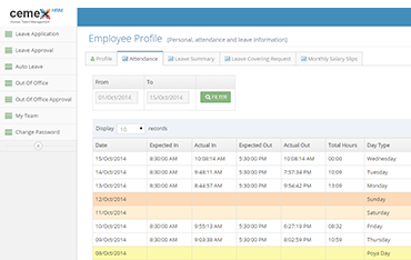 Employees are able to view all their personal information maintained by Administrator or HR personal, including contact details, educational qualifications and work history.