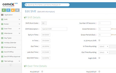 Create and manage multiple shifts and rosters. Includes 24 hour shifts and mid night cross over shifts with user defined grace periods.